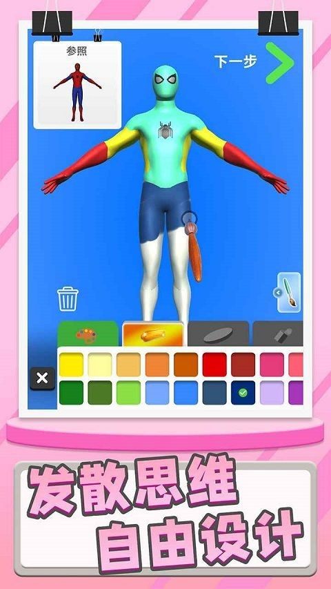 1、游戏多类型的模型,包括钢铁侠、蜘蛛侠等,玩家看自由选择。