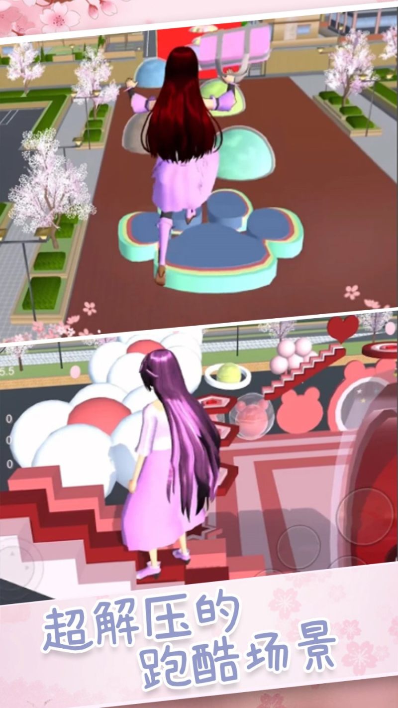 3.以樱花学校女高中生生活学习的校园为游戏背景,模拟高中生活。可以享受跑酷探索。