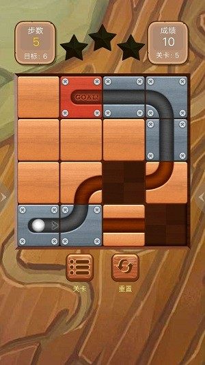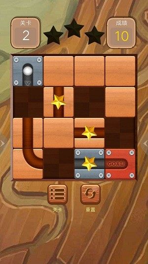 1.一个全新的解谜挑战正等着你去完成。快速移动盒子拼接所有轨迹,让球顺利进洞。