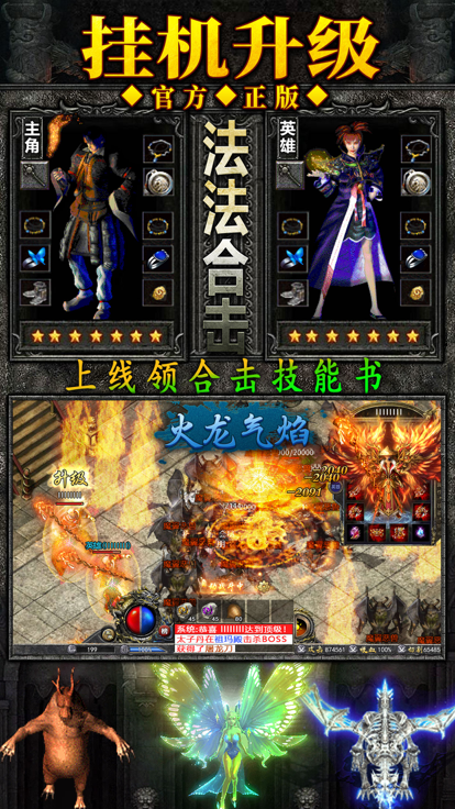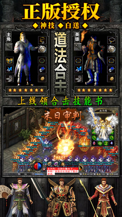 4.经典战道法三职业,自由组合,六中合击绝技燃爆沙城!刀刀合击,沙城唾手可得。