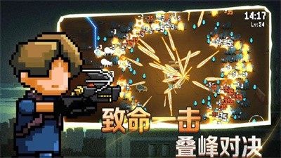 像素射击战场割草版是一款像素肉鸽生存割草冒险游戏,全新的末日生存挑战,极致割草玩法,为你带来畅爽冒险体验。在像素射击战场割草版中,众多角色和战斗流派等你来解锁,为你带来不同体验。