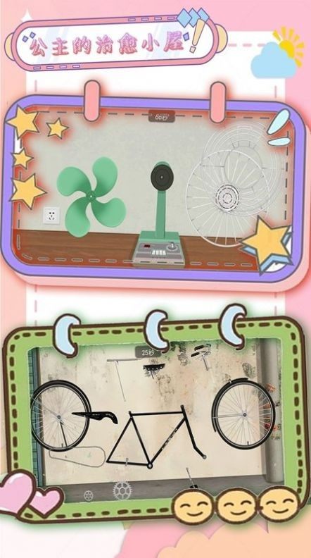 公主的治愈小屋,一款卡通风格的温馨小屋收纳整理游戏。公主的治愈小屋游戏中有很多的关卡,玩家需要在不同的关卡中,利用有限的道具,来完成自己的收纳整理。这里还可以很多的方案可以使用,安排一系列的整理,感受不一样的乐趣吧。