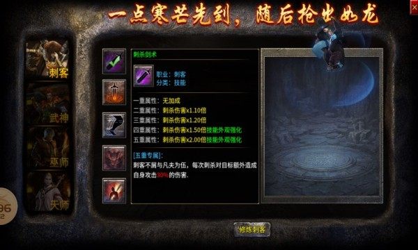 七星刺客四职业传奇,一款经典复古的rpg冒险竞技游戏。七星刺客四职业传奇游戏中玩家可以选择自己喜欢的职业角色,开启一系列的副本挑战,证明自己的实力,这里还有更多的boss战斗和竞技冒险玩法等着你。找寻隐藏地点,开启全新的任务。