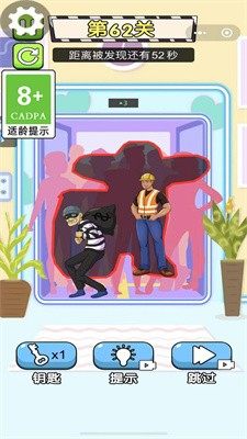 1.趣味躲猫猫闯关小游戏,各种关卡随心选择,不断进行闯关挑战,完成任务,享受游戏的快乐。