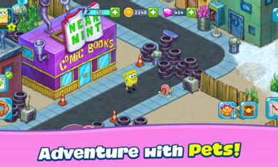 1.您将进入神奇的海底世界,探索各种海底场景和地点,和海绵宝宝一起展开冒险,获得更多奖励。