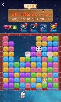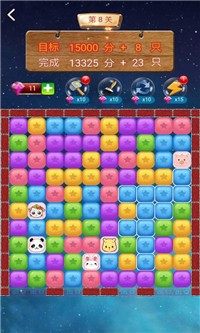 1.游戏中有各种各样的萌宠被困,通过消除相同的方块来解救它们,获得更多奖励还有成就感、