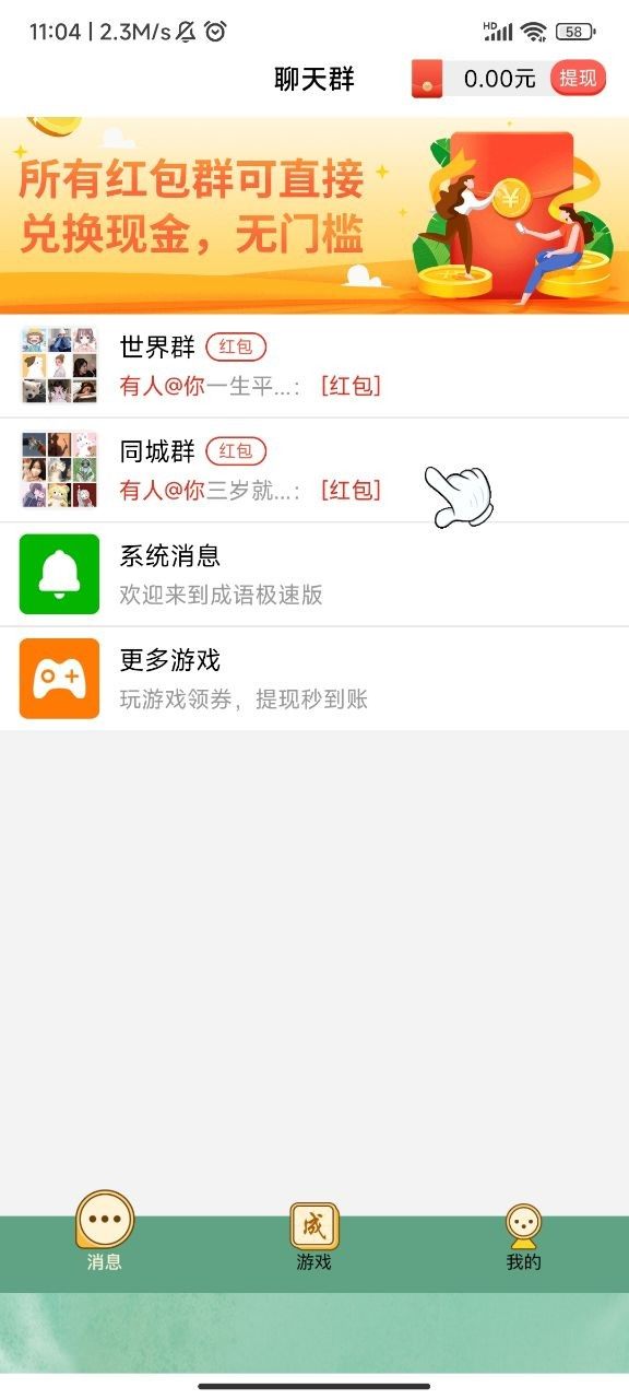 4.还有抢红包活动可以参与,在消息处,玩家可以在红包群内抢红包