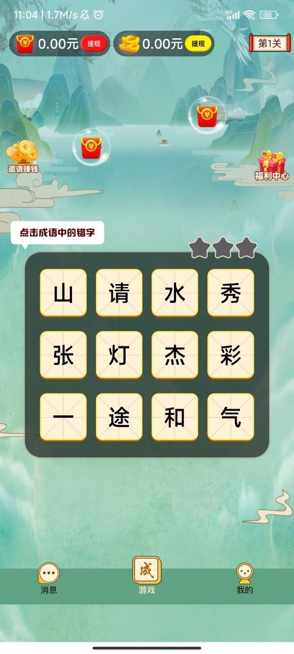 1.成语答题游戏可以赚钱,每一关都可以获得红包奖励,成功通关就能领
