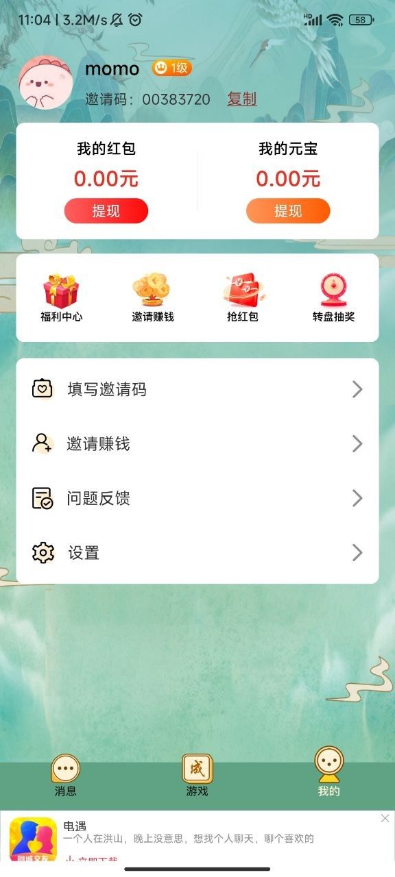 2.游戏中有红包和元宝两种方式可以提现,满0.3就可以提现