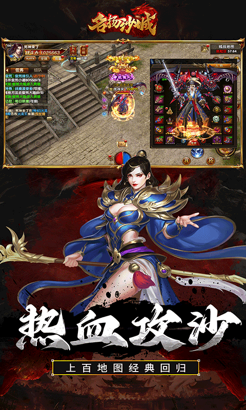 《名扬沙城》经典传奇重燃,火热震撼来袭!传承经典传奇三职业,战、道、法,组合大招瞬杀BOSS!全屏多人PVP即时战斗,提刀就砍!万人攻沙实时语音互动,带来最真实最有代入感的探索与战斗体验,热血与兄弟并存,重现沙城巅峰岁月,传奇不死,情义不散!