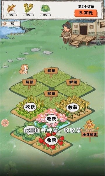 2、发现新的土地和资源,提高产量的方式有很多,在这里安排一系列的作物种植吧,扩大自己的农院规模,提高生产能力。