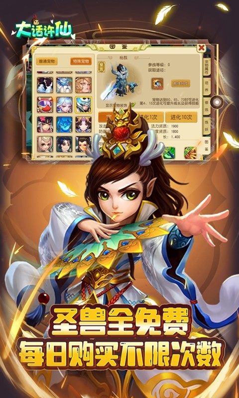 大话许仙首续0.1折是一款Q版回合制仙侠手游,在大话许仙首续0.1折中,玩家上线就送吃鸡特权和万元充值,还有满级VIP特权可以领取,GM商城一铜币就可以解锁所有圣兽,每日上线都送真充