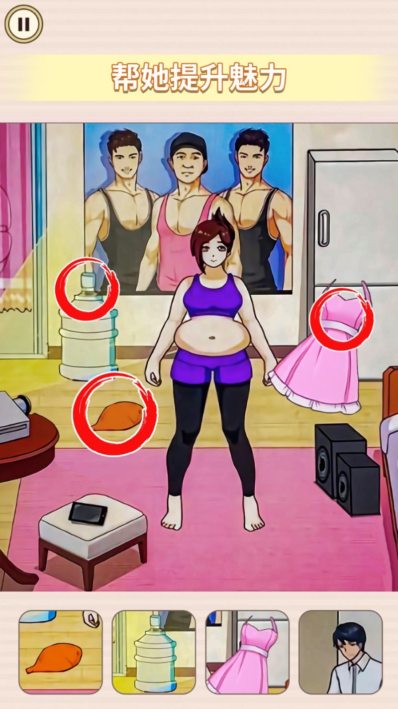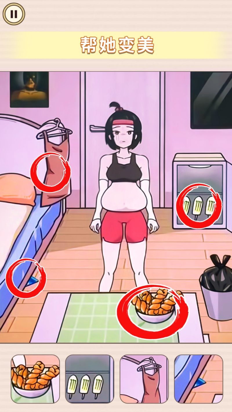 帮她减减肥,一款休闲找茬游戏。帮她减减肥游戏中玩家可以在这里完成一系列的找茬闯关体验,这里还有很多的道具可以选择,游戏画面丰富,多个关卡为你带来全新的挑战难度,多样化的关卡,每一个都是不一样的,完成任务,帮助少女快速减肥。