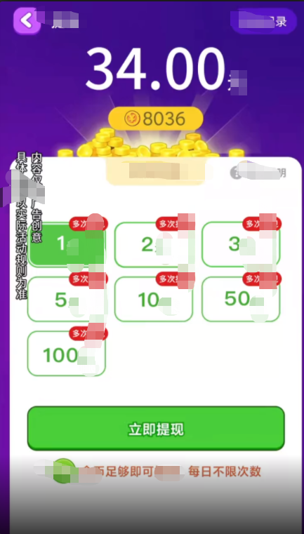1.在指定时间内答对所有成语即可过关,获得小道具,还有机会获得红包奖励。