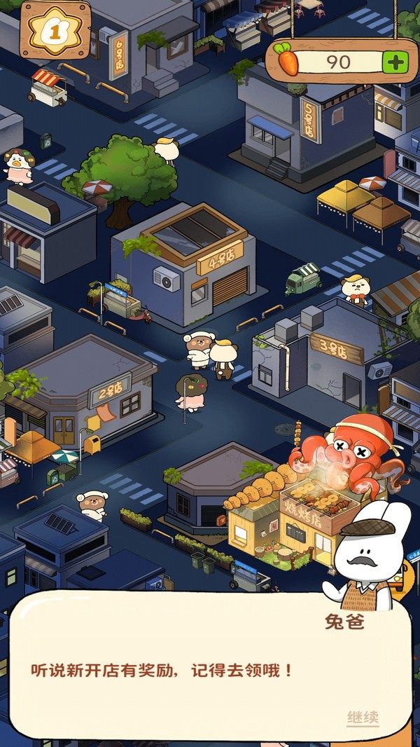 Q版的治愈系模拟经营游戏,每个角色都是可爱的小动物,还能喝他们展开交流,通过不断扩展经营,你可以提升收入和声望,成为夜市的成功人士。
