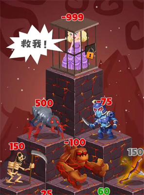 1.进入关卡进行爬塔挑战,注意先观察关卡中的敌人,按照合理的路线行动,击败最强BOSS,救出被困的公主。