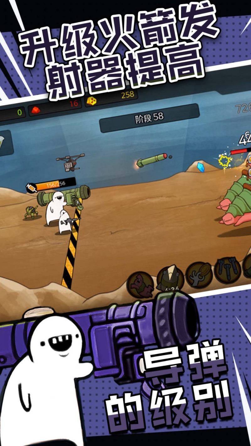 2.提升的方式主要是通过鸡哔怪物获得钻石,升级发射台、士兵、导弹等五个方面的攻击力。