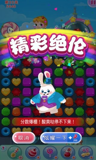 2.精心设计的关卡让你享受无穷乐趣,消除糖果,完成各种任务,解锁新的场景和挑战。