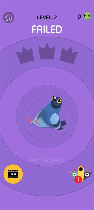 3、点击屏幕可以让鸽子开始吃玉米粒,注意上方的时间。皇冠为时间流逝,争取在结束的时候获得三个皇冠。