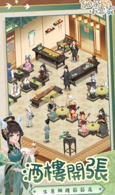 3、茶楼经营深度化,每日更新茶单,推出“琉璃青芽”“棠梨煎雪”等特色茶品,招募并培养伙计,每位伙计拥有专属技能。