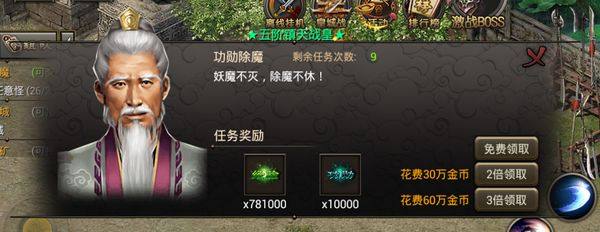 每天可完成12次每日除魔任务,花费少量金币刷10星+领3倍,经验功勋拿不停