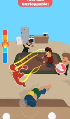 1、自由场景与超能力战斗,以火车车顶、办公室、家具城等多样化场景为战场,可操控角色利用场景道具展开对战。