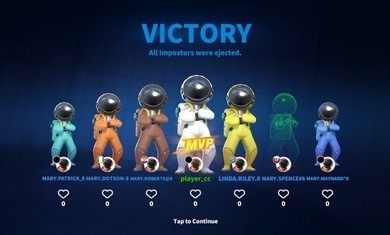 1、船员阵营:完成所有的飞船建设任务,或者通过投票将所有冒充者扔出airlock(被投票出去的人会有被丢出飞船的动画)。