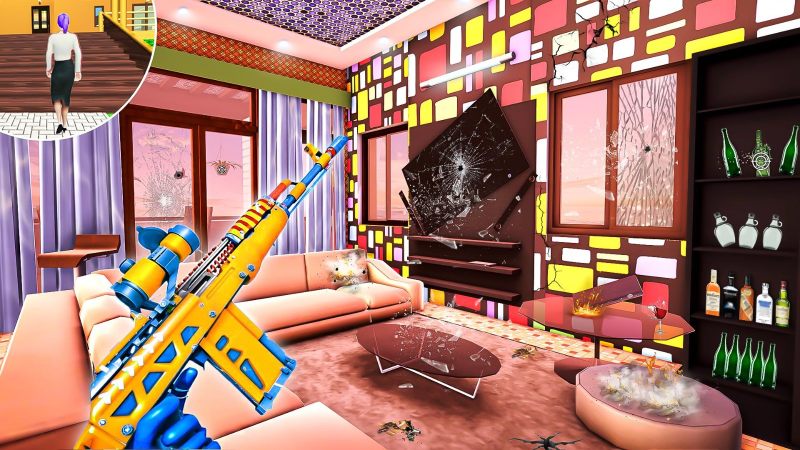 1.玩家可以选择射击、锤、砸等各种破坏形式,场景中的任意物品全部可以被摧毁。