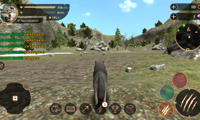 想成为狼中之王统率狼群,光靠捕杀猎物自然无法上位,还得跟其它族群的狼们拼杀才行,为此游戏也准备了另一个模式——PVP 竞技场。在这个模式中,玩家会与其它几位玩家分配成一个小群体,以猎杀动物和攻击其它狼群为目的进行战斗,战斗并没有时间限制,族群之间的拼杀可以一直持续下去,所以如何组织进攻、退避防守就是想成为狼王的你所要做的。