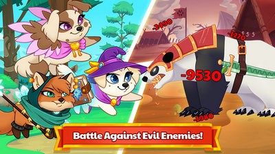 1、45种不同的狗狗英雄可供收集,让英雄们战斗并进化,以解锁新技能;