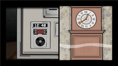 过去:根据时间调整闹钟房间会震动起来,点击花瓶打碎拿到钥匙,打开抽屉获得西洋棋,将西洋棋放到棋盘上。