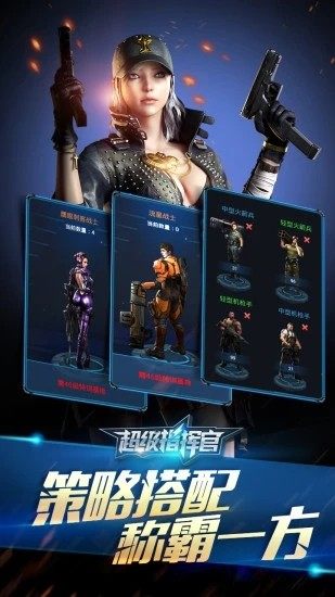 1.游戏采用兵种搭配的策略玩法,在战场中,玩家将充分发挥指挥官优势来调动军队进行作战。