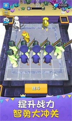 1.指挥彩虹朋友完成战斗,对抗不同的敌人,合并相同的彩虹朋友,提升战斗力,完成关卡挑战。