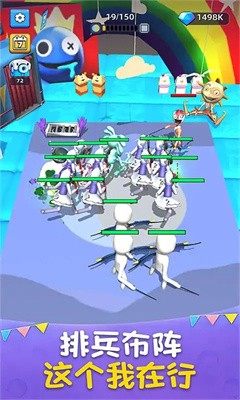 2.不断升级彩虹朋友的战斗力,合理安排兵力,组成强大阵容进行战斗,消灭各种敌人完成任务。