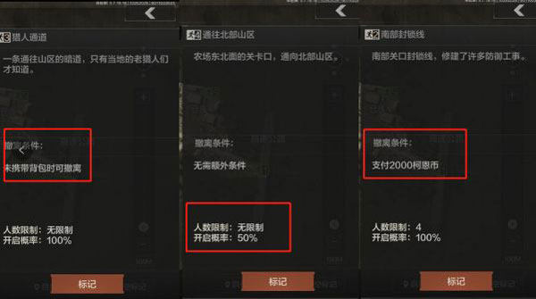 A5:部分撤离点并不是可以100%撤离的;另外,有的撤离点是需要满足条件才能撤离。有的撤离点存在开启概率,不一定会开启,所以大家最好是选择100%概率的撤离点。