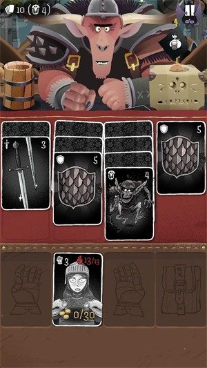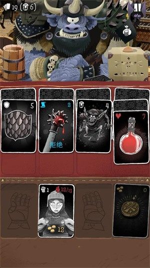 4、游戏中会随机出现不同的怪物牌,使用装备牌可以攻击或者格挡怪物的伤害,每一局都有不同的怪物需要消灭。