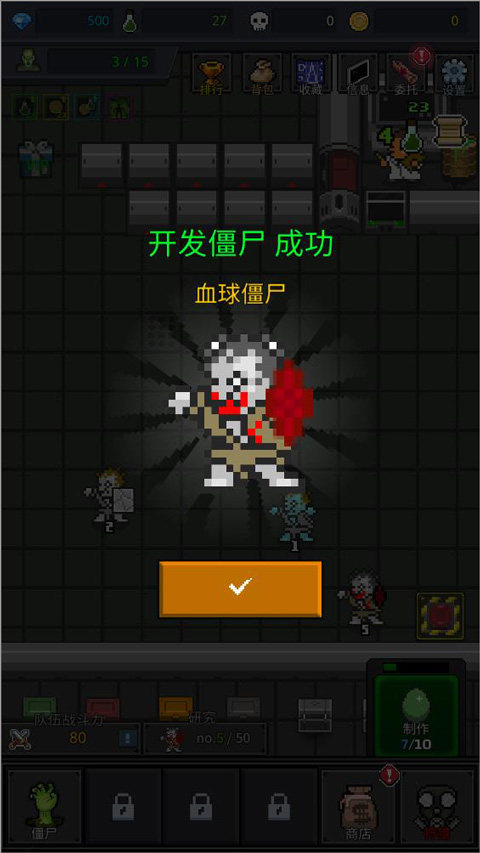 3.战斗采用半自动或指挥模式,拖拽合并手感顺滑,像素僵尸合并时的动画短小精悍,不会卡顿。