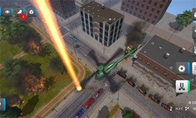 进入城市后,从菜单切换武器或灾害,拖动屏幕调整方向和位置,点击或长按触发攻击。简单上手,几乎没有学习门槛。