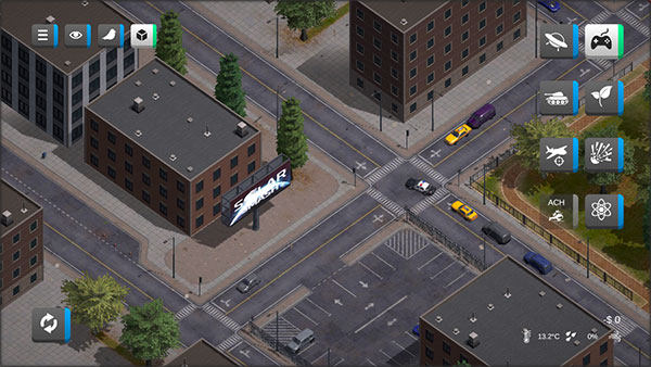 后期尝试组合玩法——用风暴先吹散车辆,再用激光精准切割摩天大楼;或召唤怪兽横冲直撞,观察不同地形下的破坏连锁反应。挑战模式可追求最高摧毁分数,比较不同武器的效率。注意能量管理,优先用低耗工具清场,再放大招收尾。