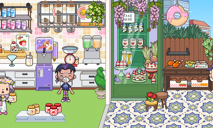 ps:米加小镇世界是一款完全开放的游戏,没有任务、分数或故事情节。它就像一个巨大的、色彩缤纷的玩具屋,里面摆满了各种物品,您可以在这里发挥您的想象力,创造您自己的故事,可以从冰箱中取出食物、在烤箱中烹饪、打开和关闭所有门等等。浴室、客厅和卧室也是如此:您可以触摸、移动屏幕上的每一个项目并与之互动。