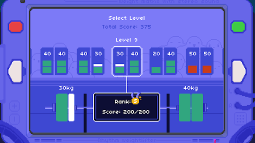 游戏设有多个关卡,每个关卡对应不同的背景音乐和节奏难度。随着关卡推进,节奏会逐渐加快,举重的重量也会增加,对玩家的反应速度和节奏把控能力提出更高要求。