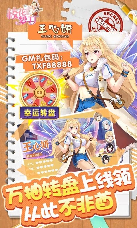 校花梦工厂爆衣版是一款唯一正版授权的校花青春手游大作。上线白送极品校花,快和校花们一起来约会!输入兑换码即可领取专属校花礼包等毕业级神器道具,积分榜第一名可获得限时神将。输入TXD66666、TLB99999、TX266666等礼包码可领取海量福利。
