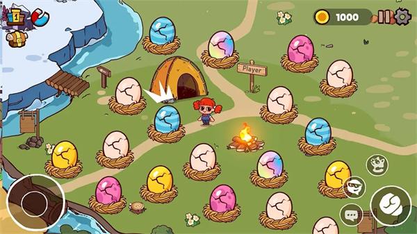 1、首先打开游戏,进入游戏后,左边可以操控摇杆移动收集金币,右边按钮可以互动;