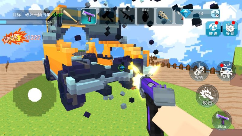 3.玩家可以驾驶战车进行疯狂的碰撞和碾压,还能解锁更多的方块和道具进行破坏。