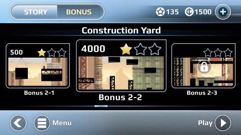 分为3个世界,总共三十多个关卡,每个关卡都有特色的障碍设计,并且完美地融入Roguelike元素,玩家在跑酷的时也有不一样的挑战,同时还允许玩家在每个关卡都可以装备三个特色炫技,在每一关卡结束后会进行星星评级,过关即可获得一颗星,完成全部特殊动作得到两颗星,三颗星需要收集到关卡内所有方块。