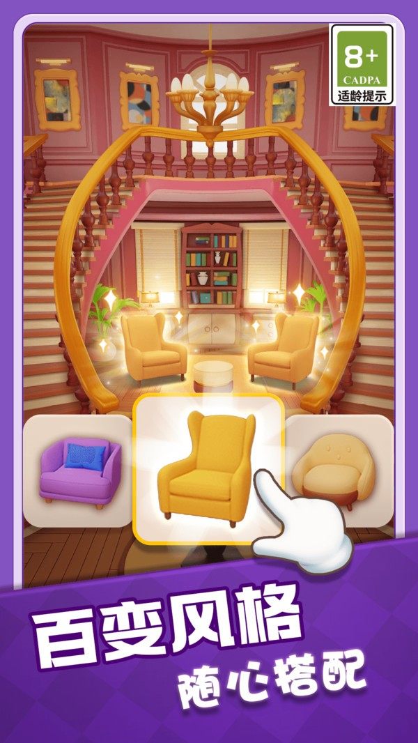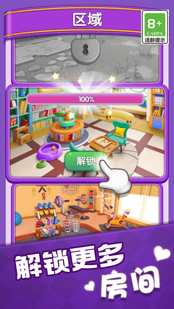 1.游戏结合了消除玩法和家装玩法,两大休闲重头元素相结合,给玩家带来更多的乐趣。