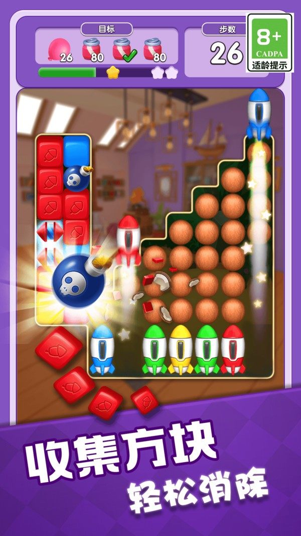 2.在消除过程中可以解锁强大的道具来获得更多的得分,还能和其他玩家进行消除竞技。