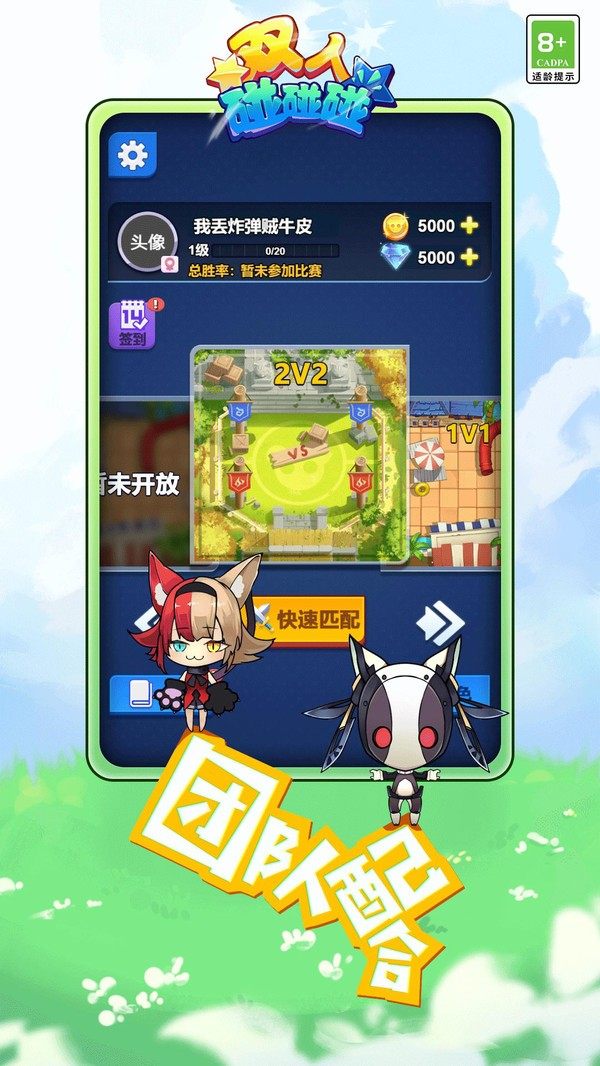 双人碰碰碰是一款休闲碰撞竞技小游戏,玩家通过两两合作进行撞击对抗,直到一方所有玩家全部阵亡即可,双人碰碰碰中有多位英雄角色可以选择,不同的角色有不同的撞击技能,团队通过默契配合来完成击杀,获得胜利。