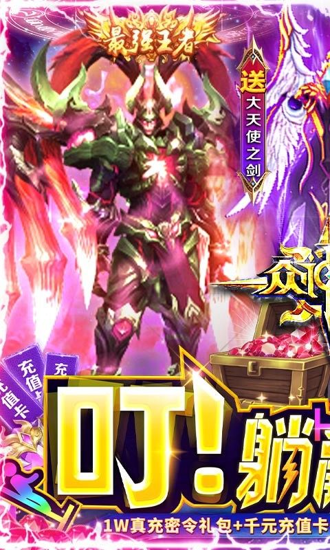 1、创角即送VIP10(首日完成任务送满V)、【神器】大天使之剑、躺赢特权激活卡、1W真充密令礼包+千元充值卡礼盒。