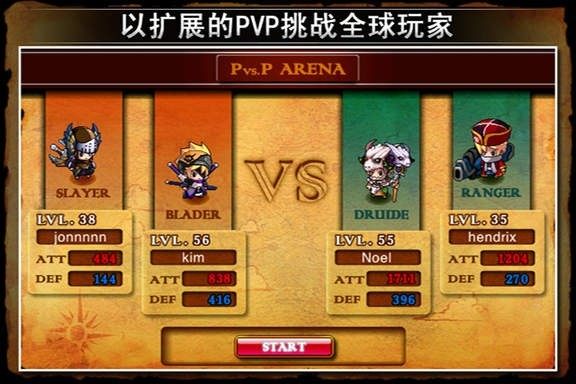 PVP:在竞技场中与其他玩家进行1vs1或2vs2战斗。